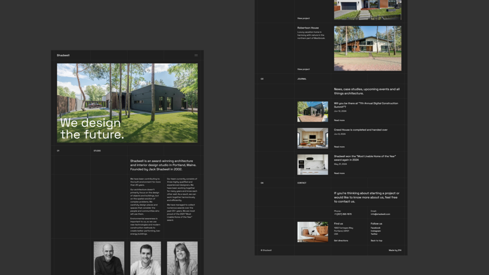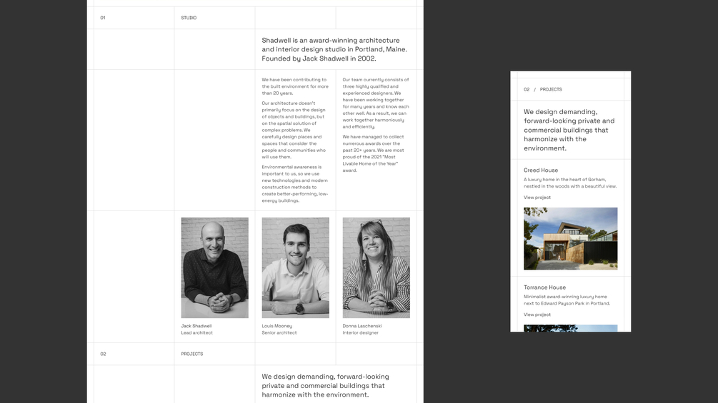 Shadwell is a minimalist portfolio Framer template. Perfect for small architecture and interior design studios. Easy to use: you only have to replace your content and publish your website.